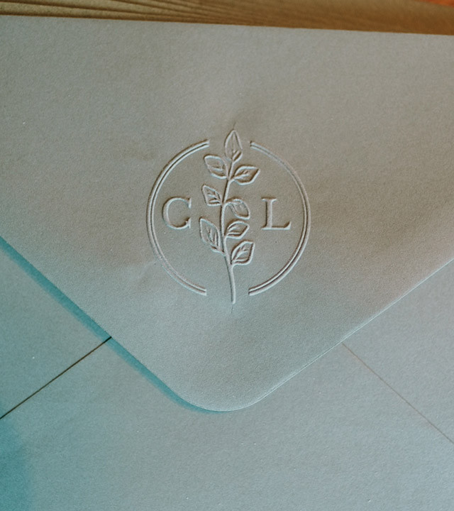 Timbre à sec personnalisé avec vos initiales pour personnaliser vos faire-parts de Mariage.