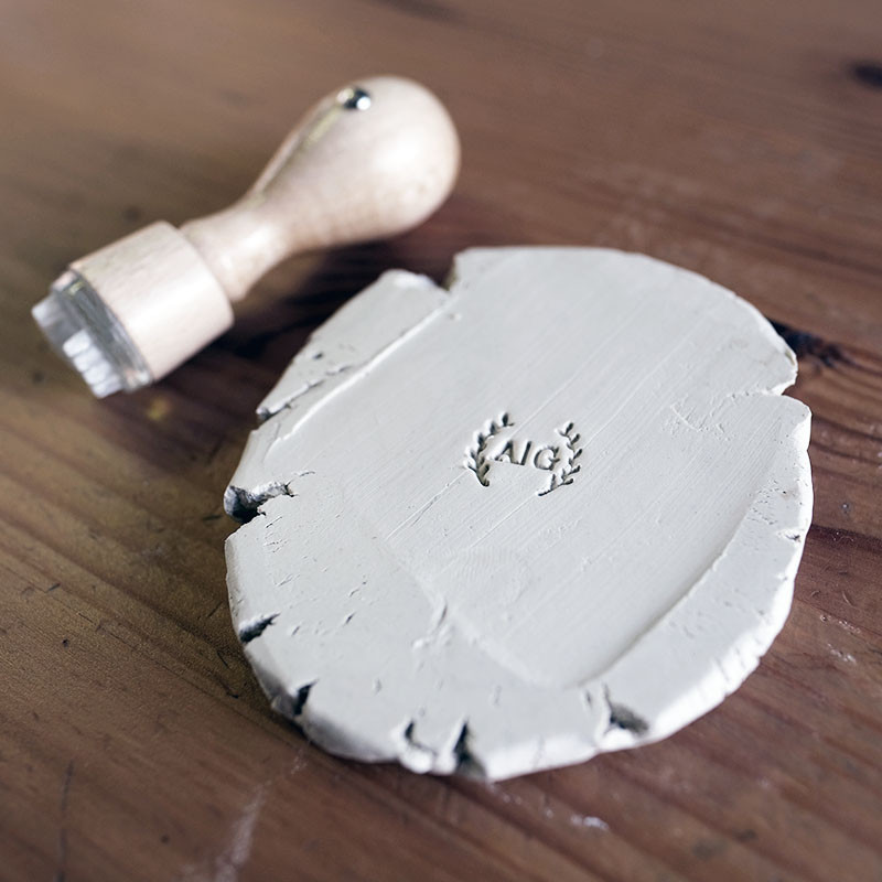Tampon Rond Personnalisé de diamètre maximum. 20mm pour marquer la céramique, la terre et l'argile.