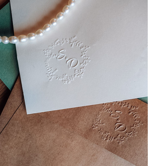 Quick view Liste de souhaits Timbre à Sec Initiales Mariage | N°10 59,00 € TTC Embossage des faire-parts de mariage avec une pince personnalisée. Ce modèle, chic et intemporel, est composé d'une demi couronne, vos...